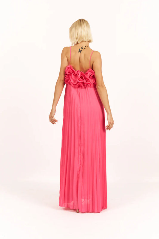 Abito lungo plissettato con dettagli pendenti e drappeggI IMPERIAL