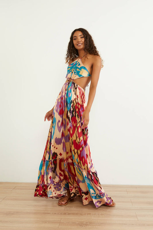 Abito lungo smanicato monocolour con drappeggi IMPERIAL