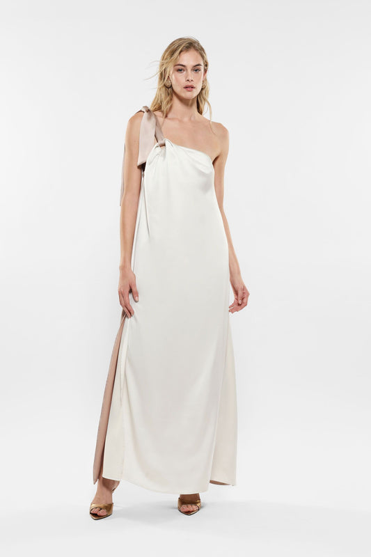 Abito lungo monospalla con fascia a contrasto IMPERIAL