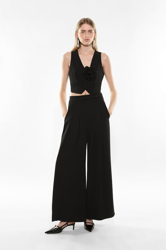 Pantaloni a palazzo monocolour con pinces e cintura IMPERIAL