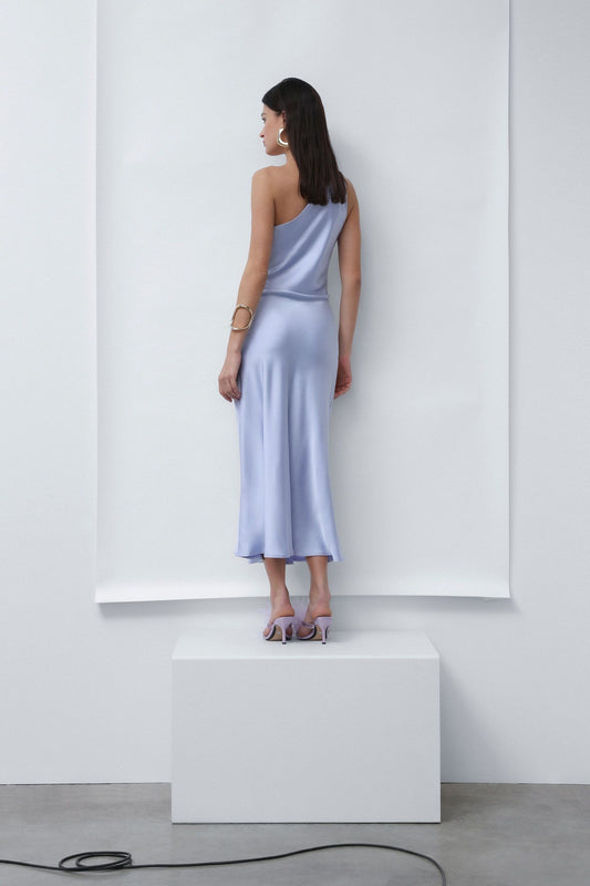 Abito midi monospalla monocolour con cut-out, gancio e pinces IMPERIAL.