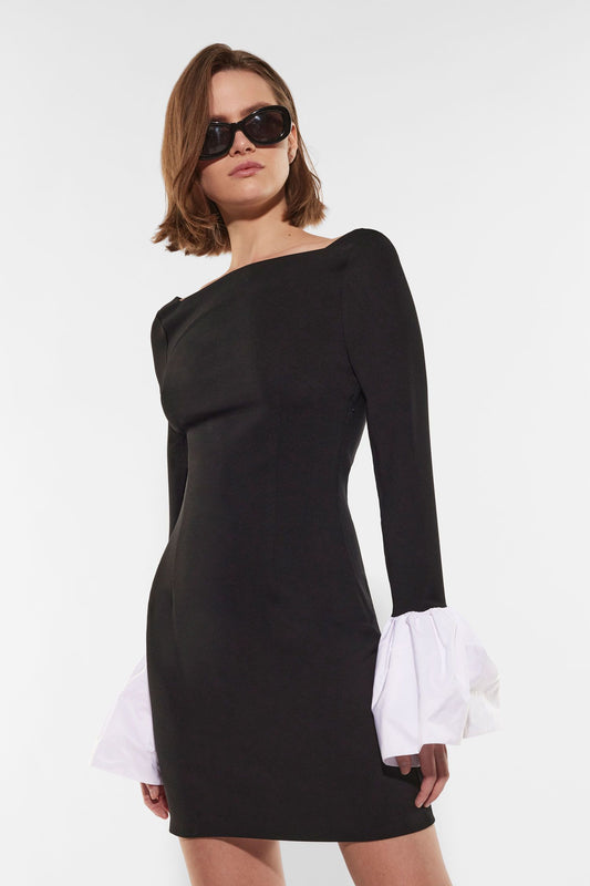 Abito midi monocolour con maniche a campana a contrasto IMPERIAL.