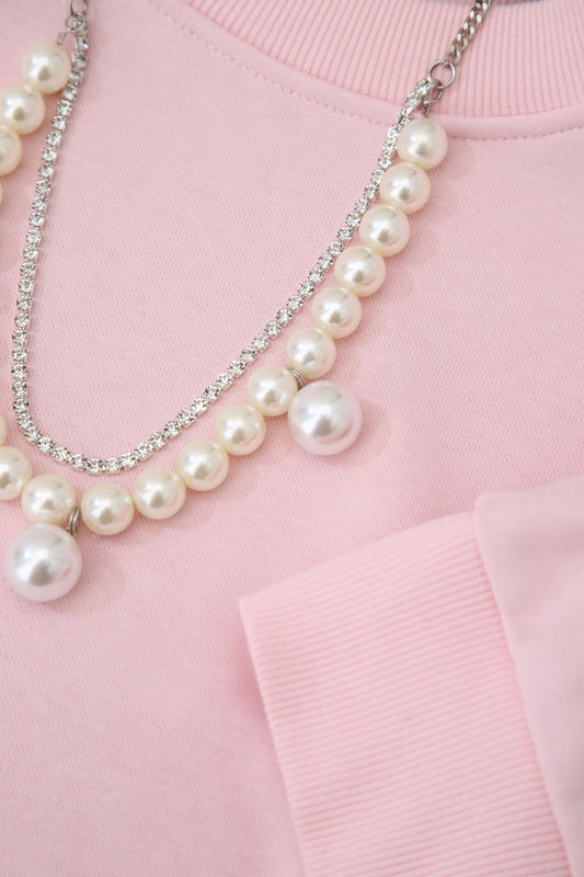 Felpa oversize monocolour con dettaglio collier di perle IMPERIAL.