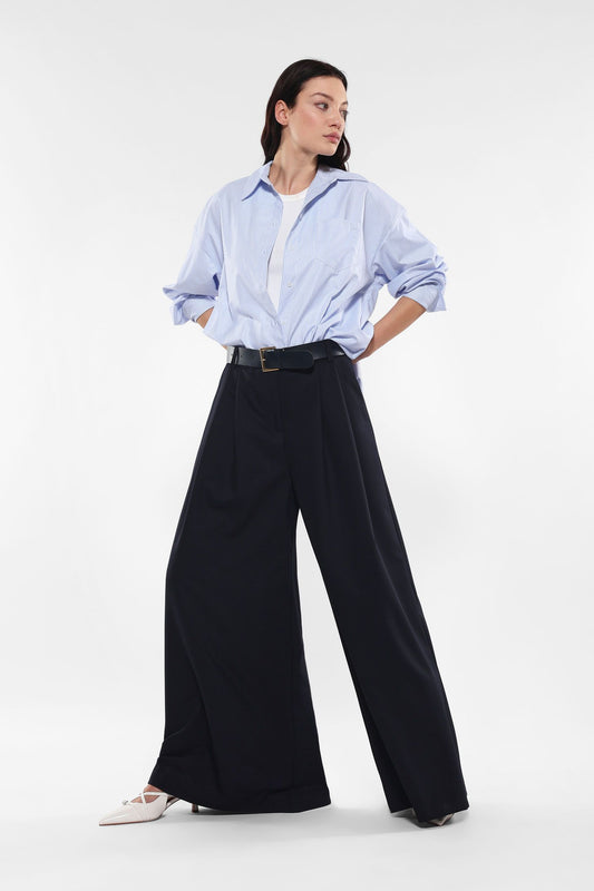 Pantaloni a palazzo monocolour con piega stirata e cintura IMPERIAL.