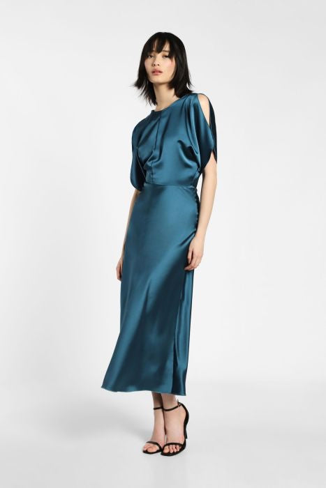 Abito midi monocolour con maniche corte aperte IMPERIAL