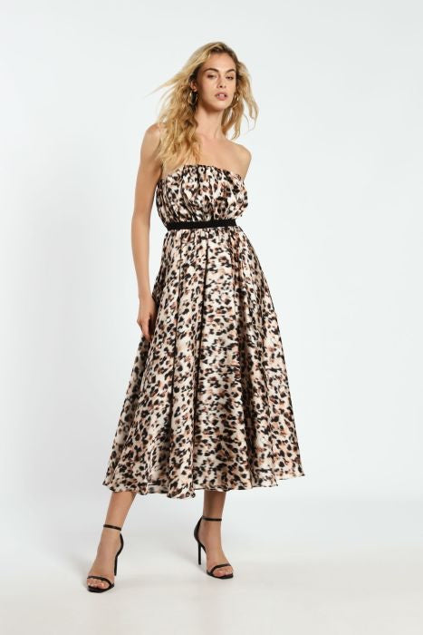 Abito midi fantasia animalier con fascia in vita IMPERIAL