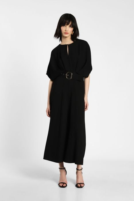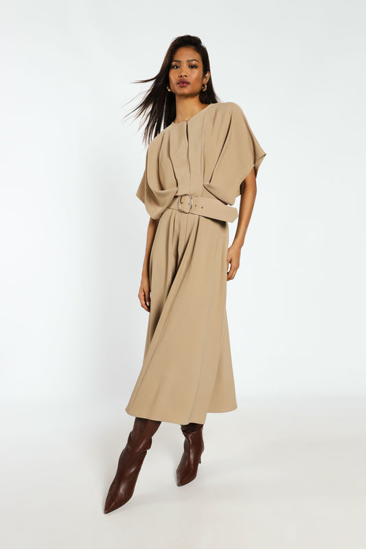 Abito midi monocolour con maniche volume e cintura IMPERIAL
