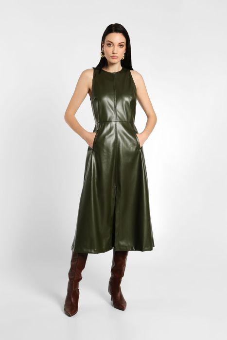 Abito midi smanicato in similpelle con spacco frontale IMPERIAL