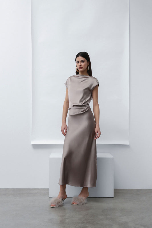 Abito lungo smanicato monocolour con drappeggi IMPERIAL