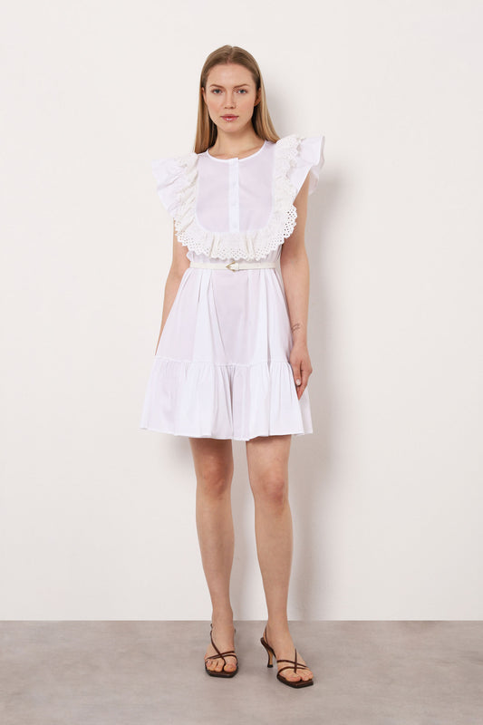 ABITO CON RUCHES E VOLANT IN SANGALLO IMPERIAL