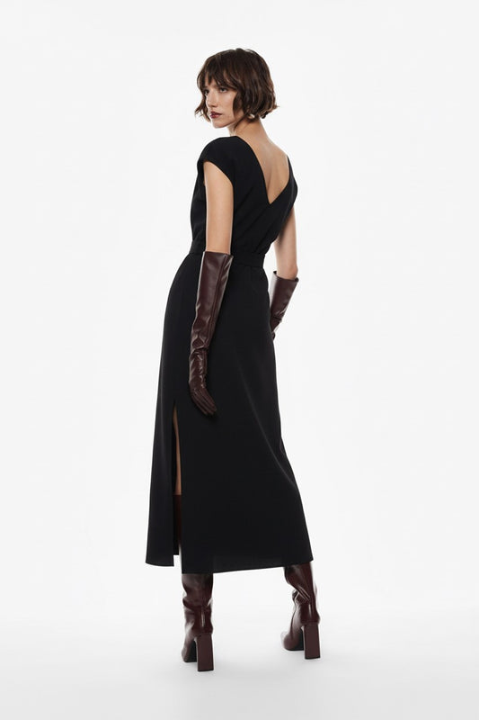 ABITO LUNGO CON MANICHE CORTE IN PIZZO AFSAKBA NERO IMPERIAL.