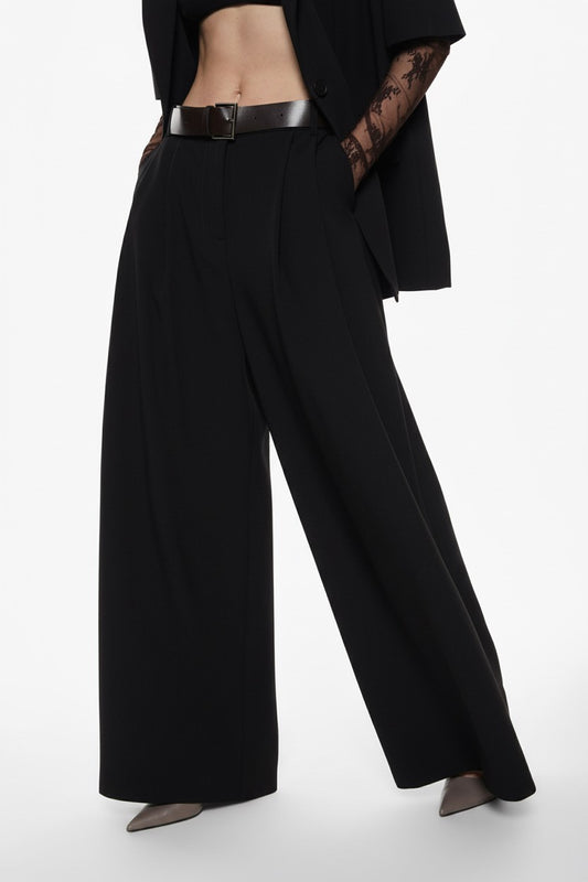 PANTALONI PALAZZO P6C1KER NERO IMPERIAL.