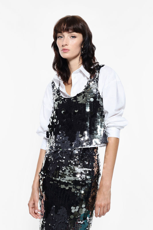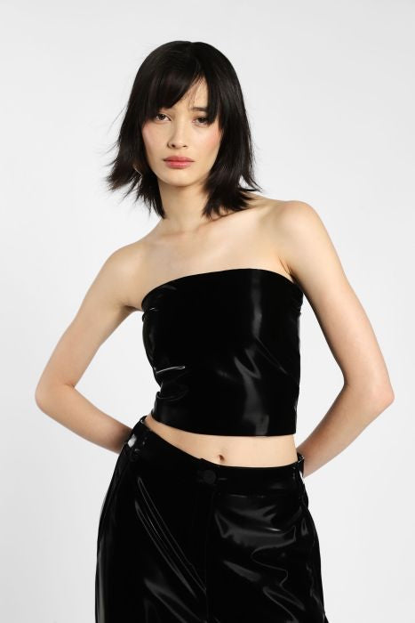 Top cropped effetto satin con zip sul retro IMPERIAL