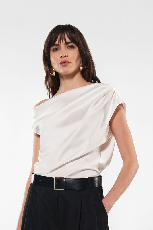 Top monospalla monocolour con drappeggi IMPERIAL.