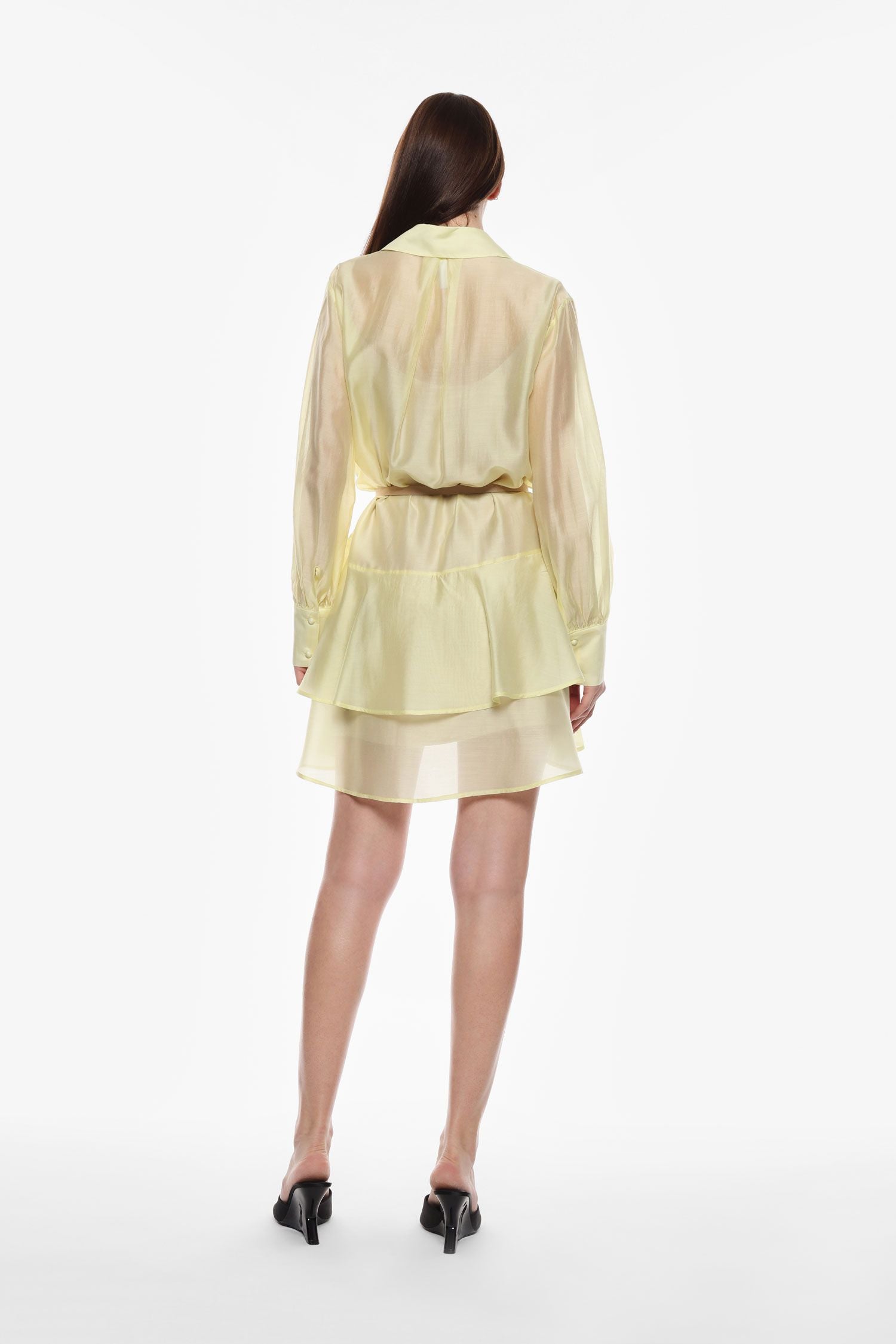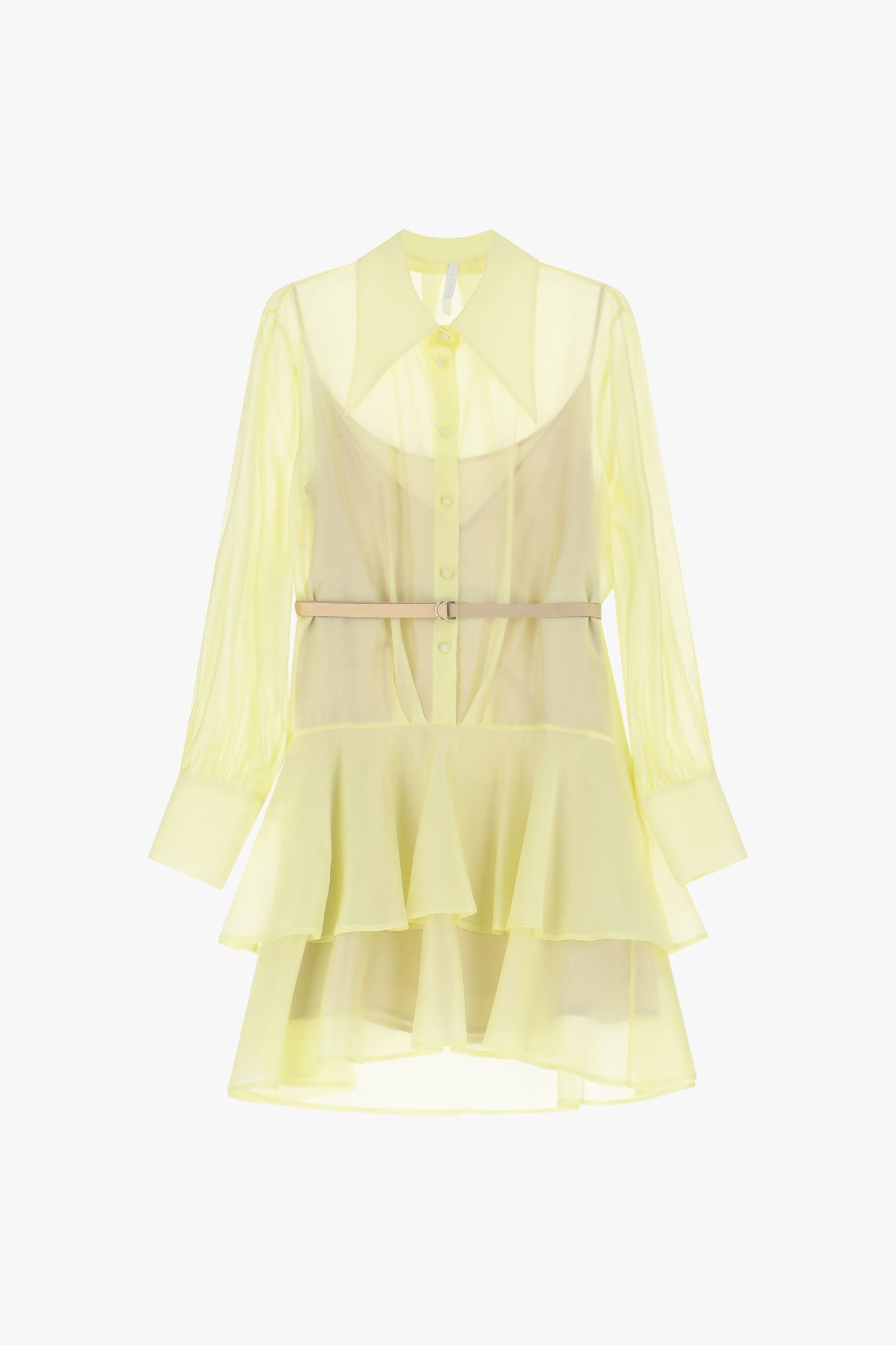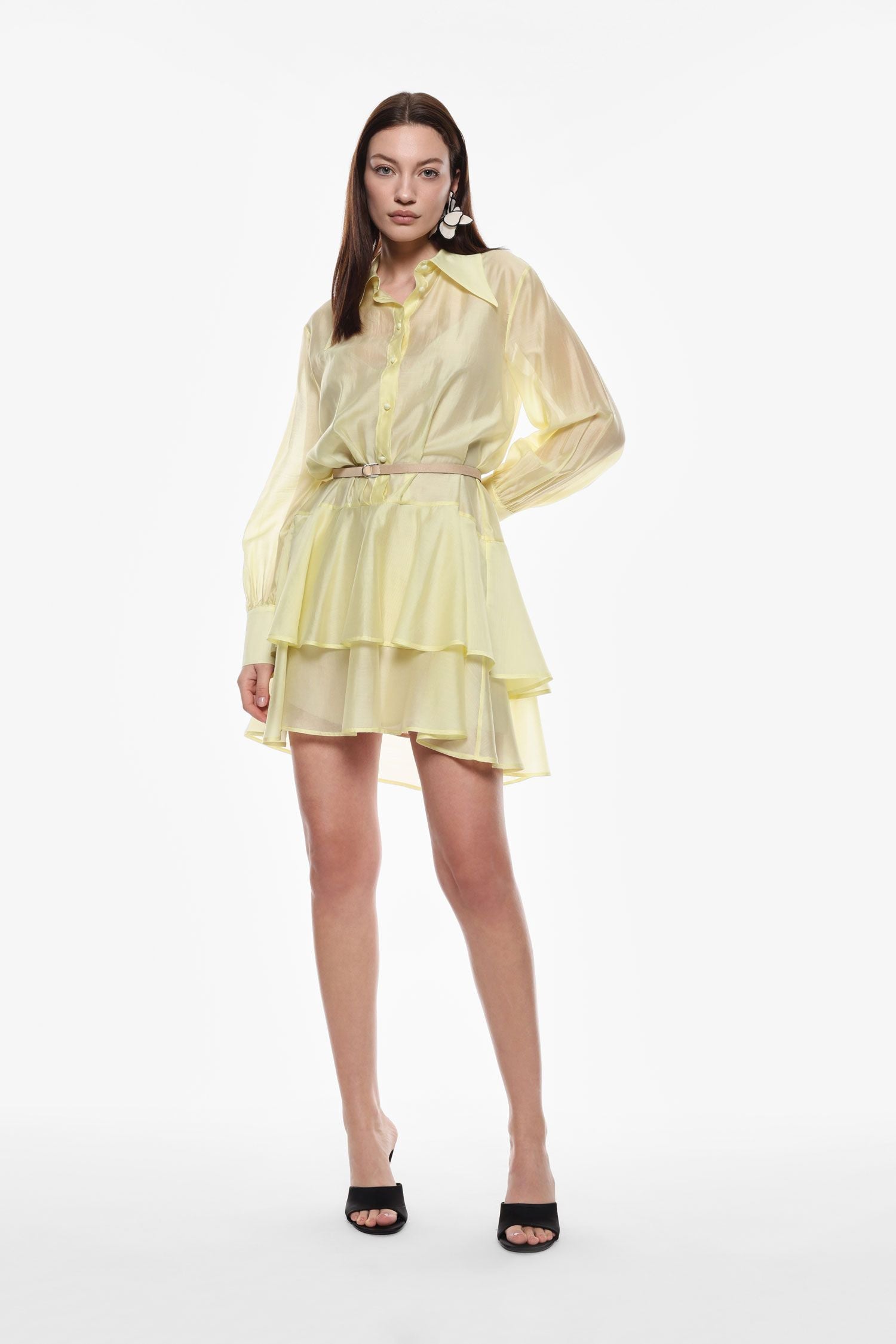 Un abito che incarna la raffinatezza urbana con la sua silhouette fluida e la lunghezza accattivante. Le maniche lunghe aggiungono un tocco di classe, mentre la chiusura a bottoni dona un'eleganza sofisticata. Ideale per chi ama distinguersi in città con un capo versatilmente chic.