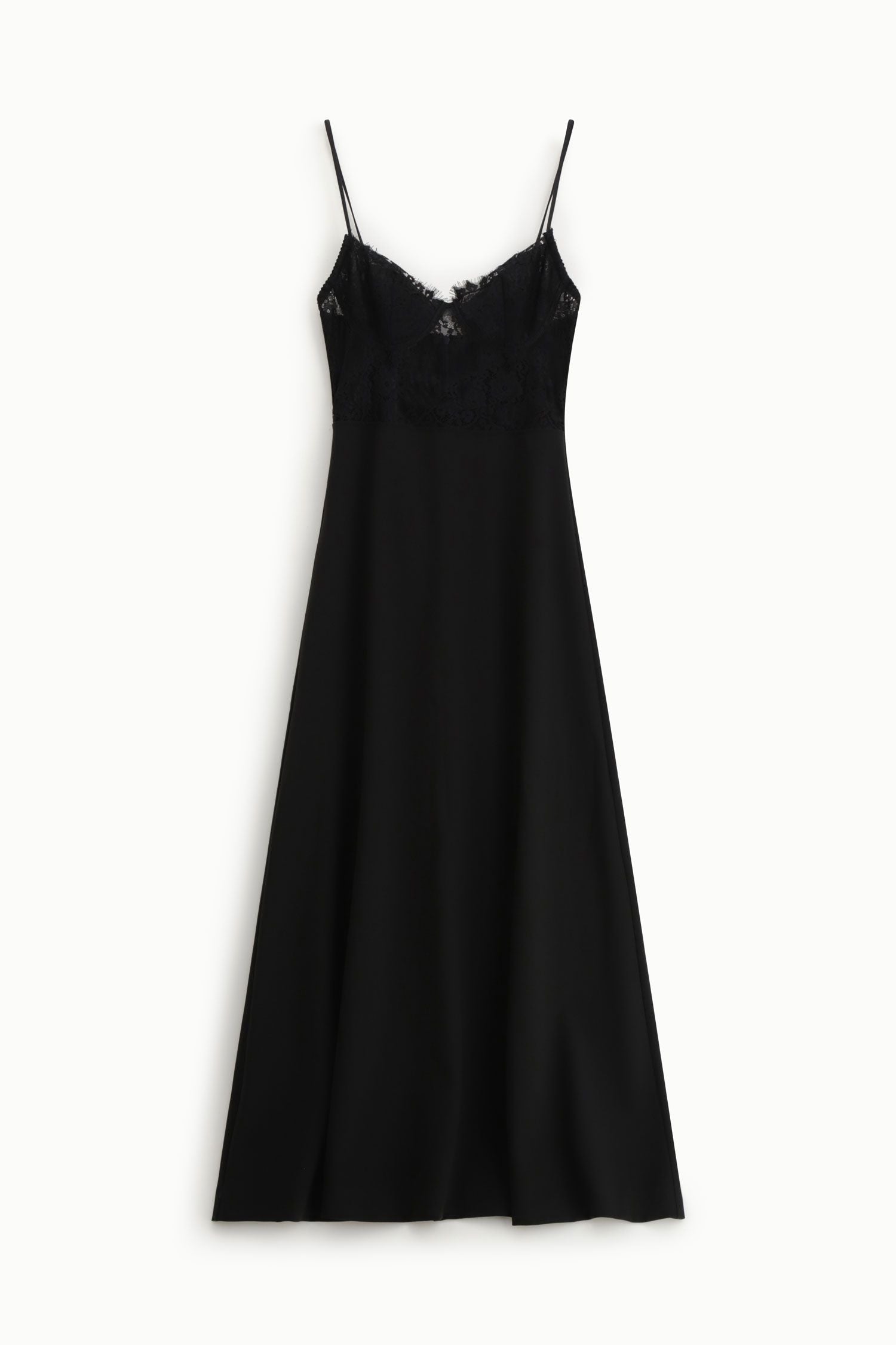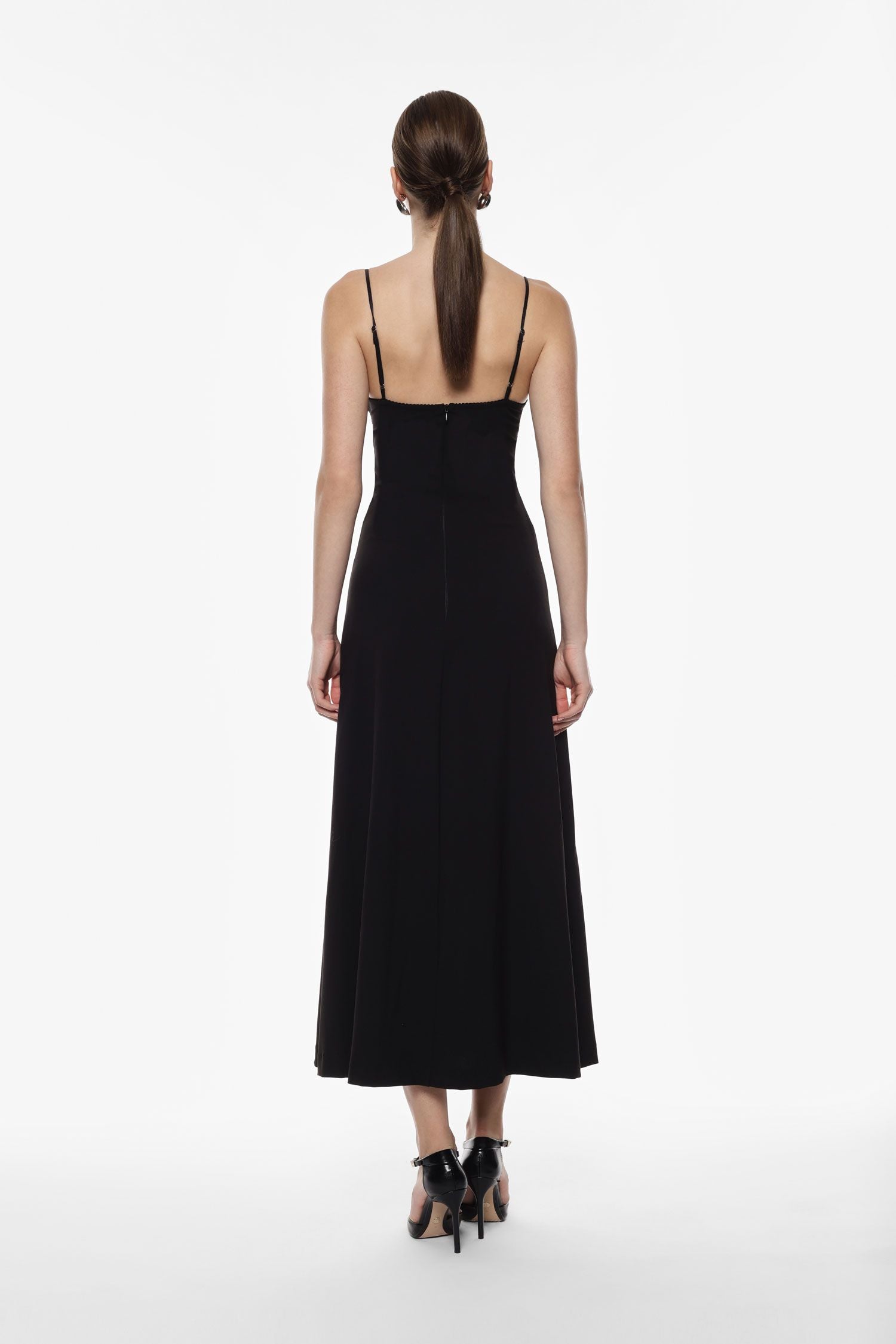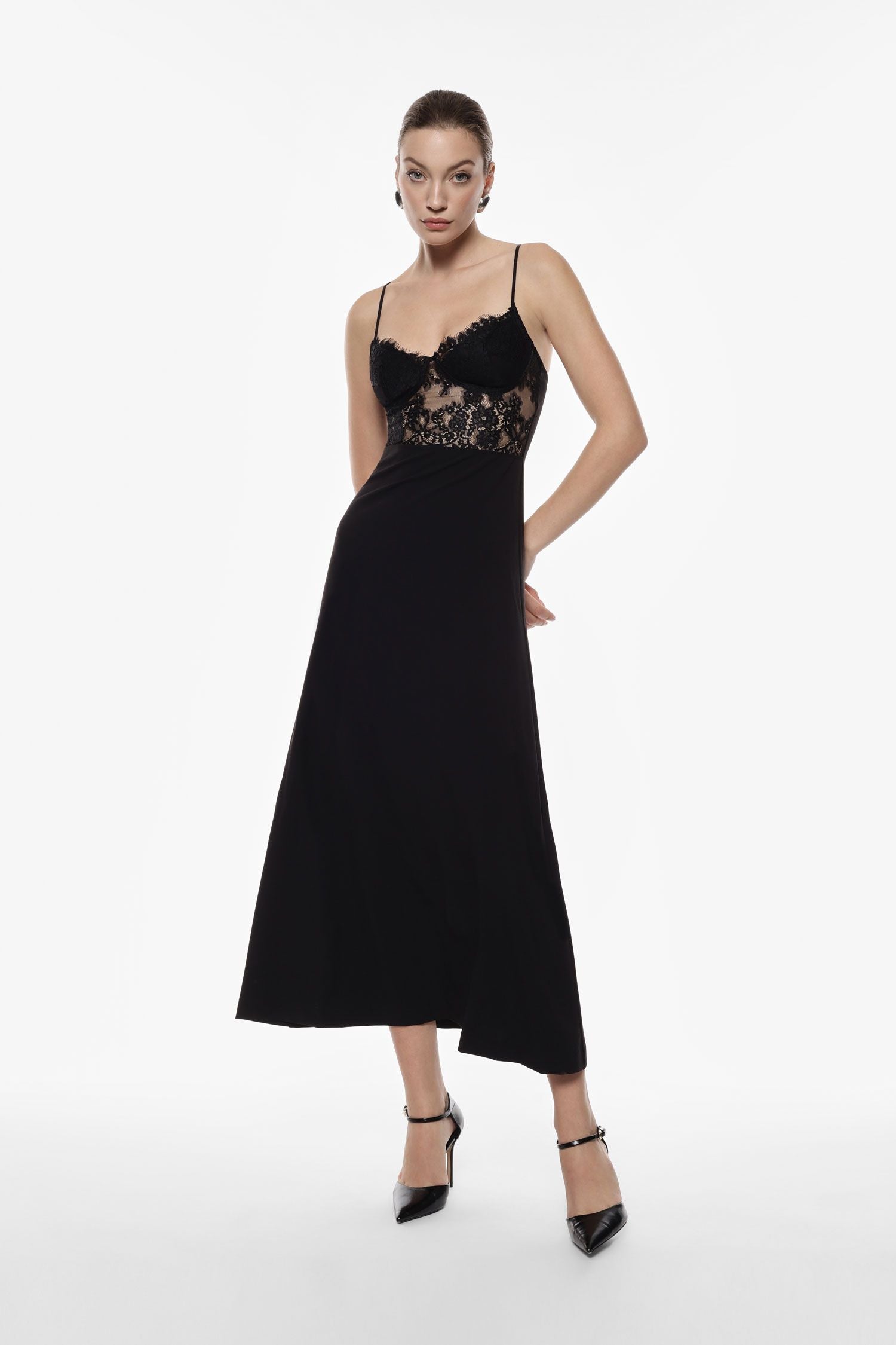 ABITO LUNGO CON CORPINO IN PIZZO E SPALLINE SOTTILI AFRTKFU NERO IMPERIAL.