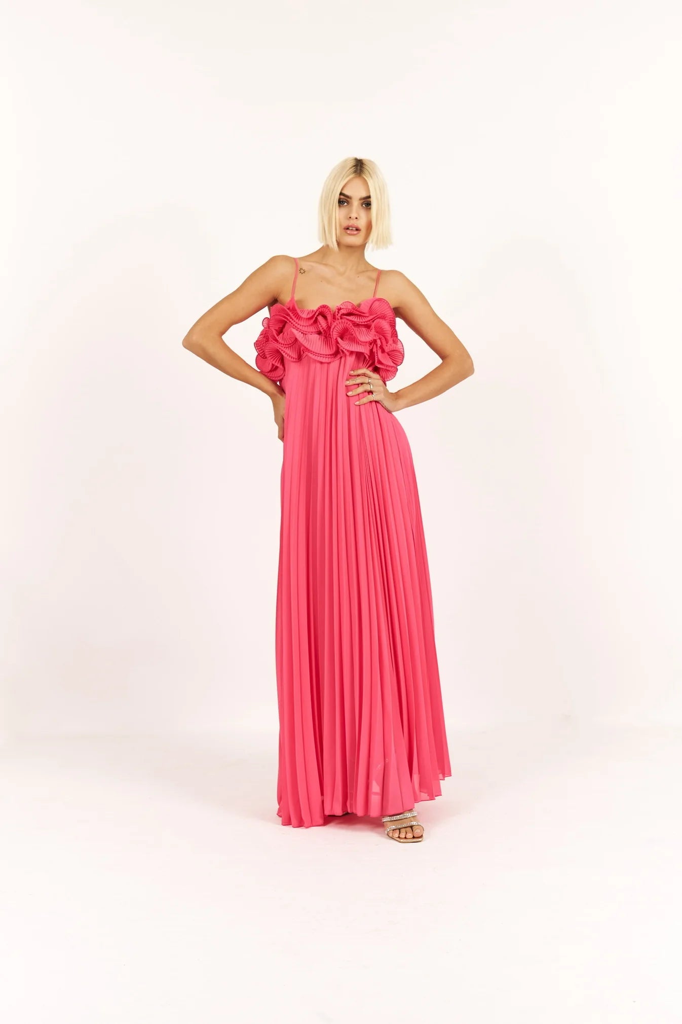ABITO LUNGO PLISSÉ CON ROUGE