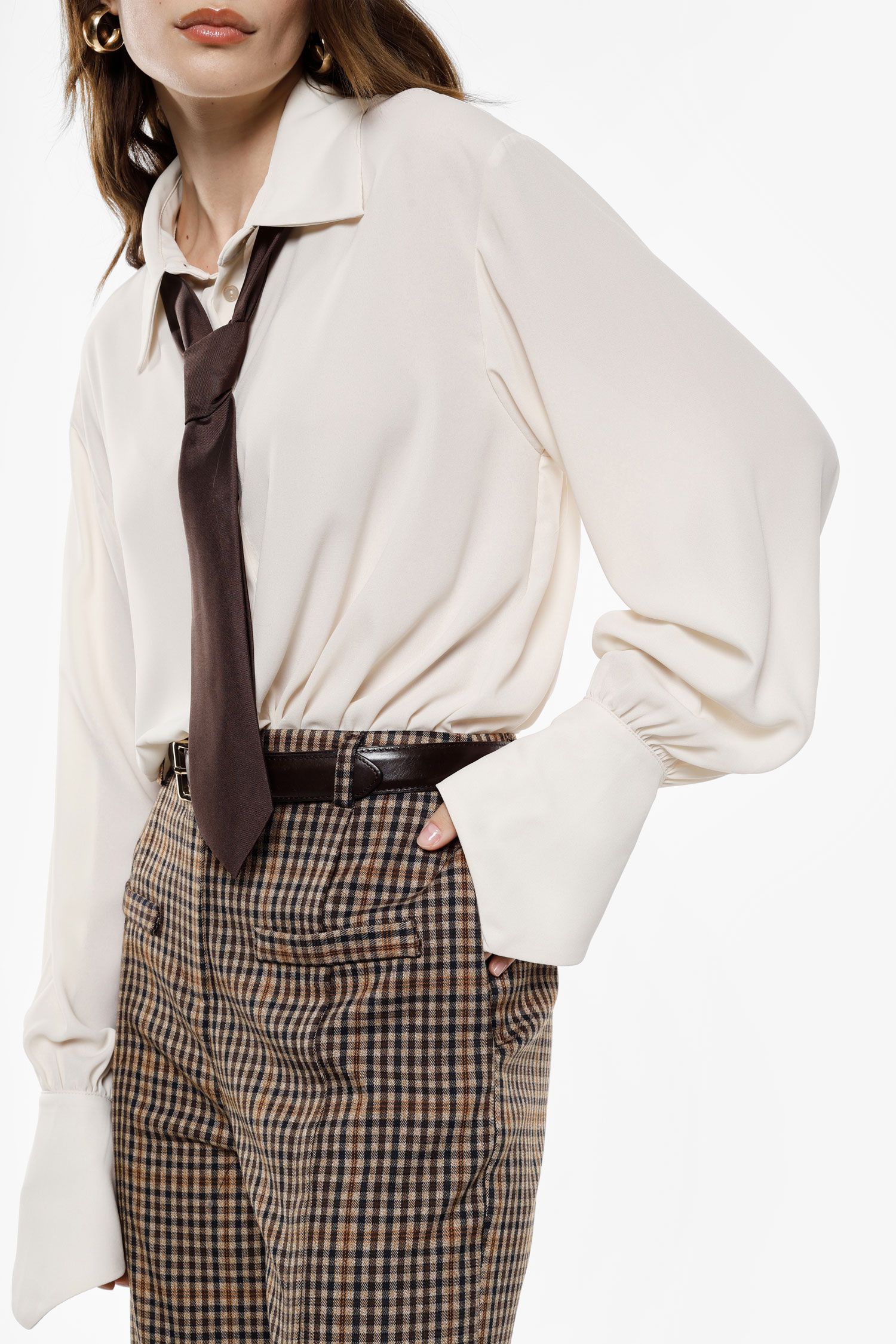 Body camicia dalla linea regolare con maniche lunghe ampie e polsini estesi, valorizzato da un colletto classico e abbottonatura nascosta sul davanti. Una soluzione versatile per chi desidera un look sofisticato e contemporaneo, capace di combinare funzionalità sartoriale e stile individuale anche nei contesti più esigenti.
