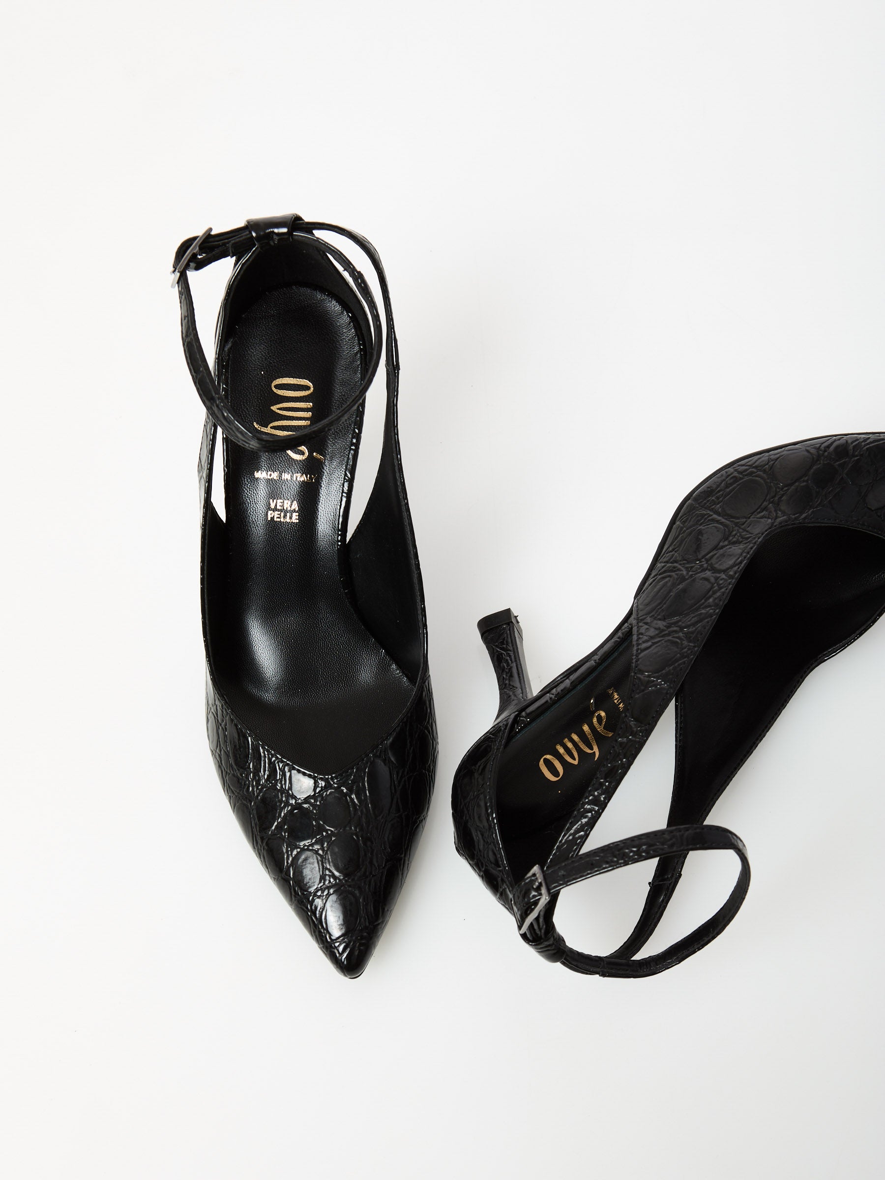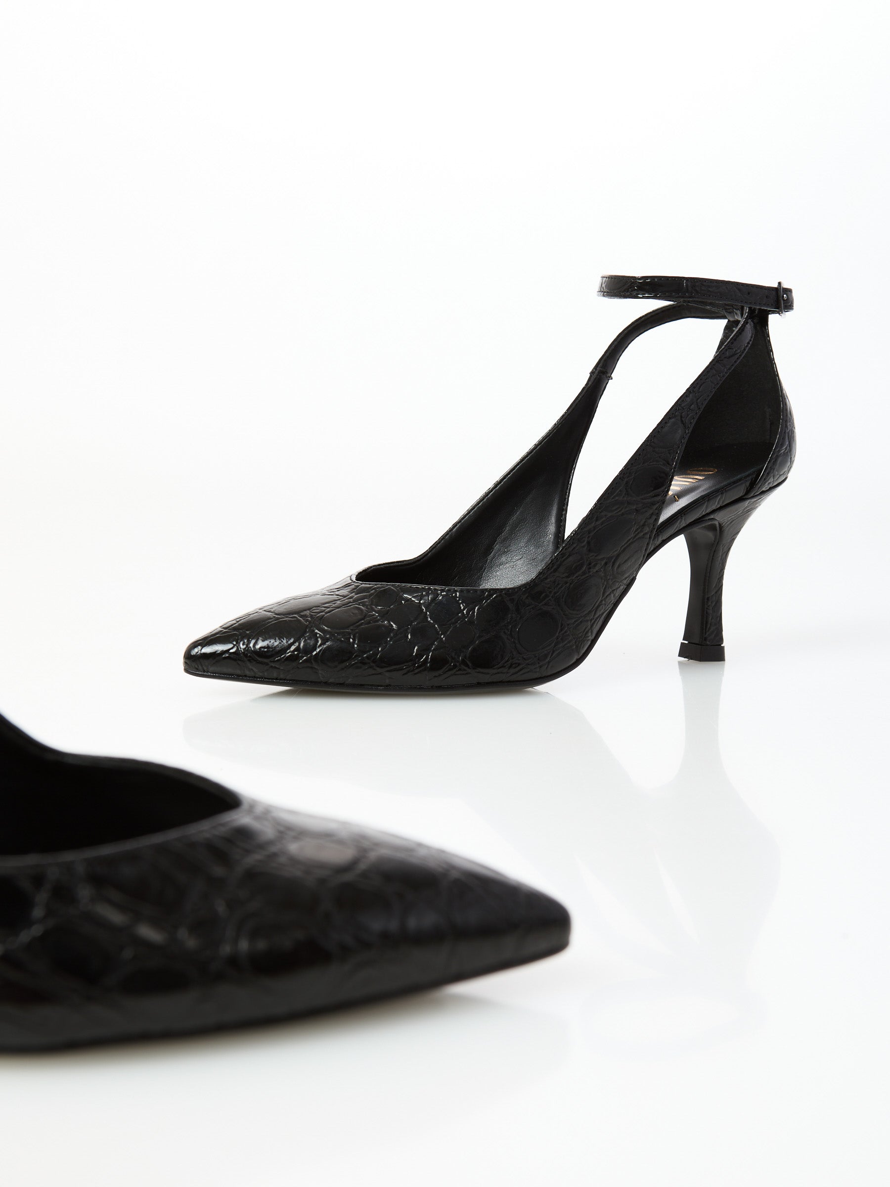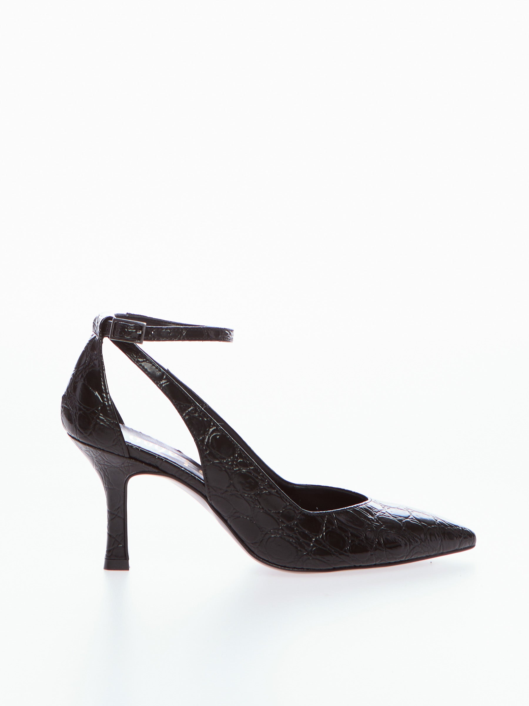 Décolleté in ecopelle, cinturino, tacco 8 cm.