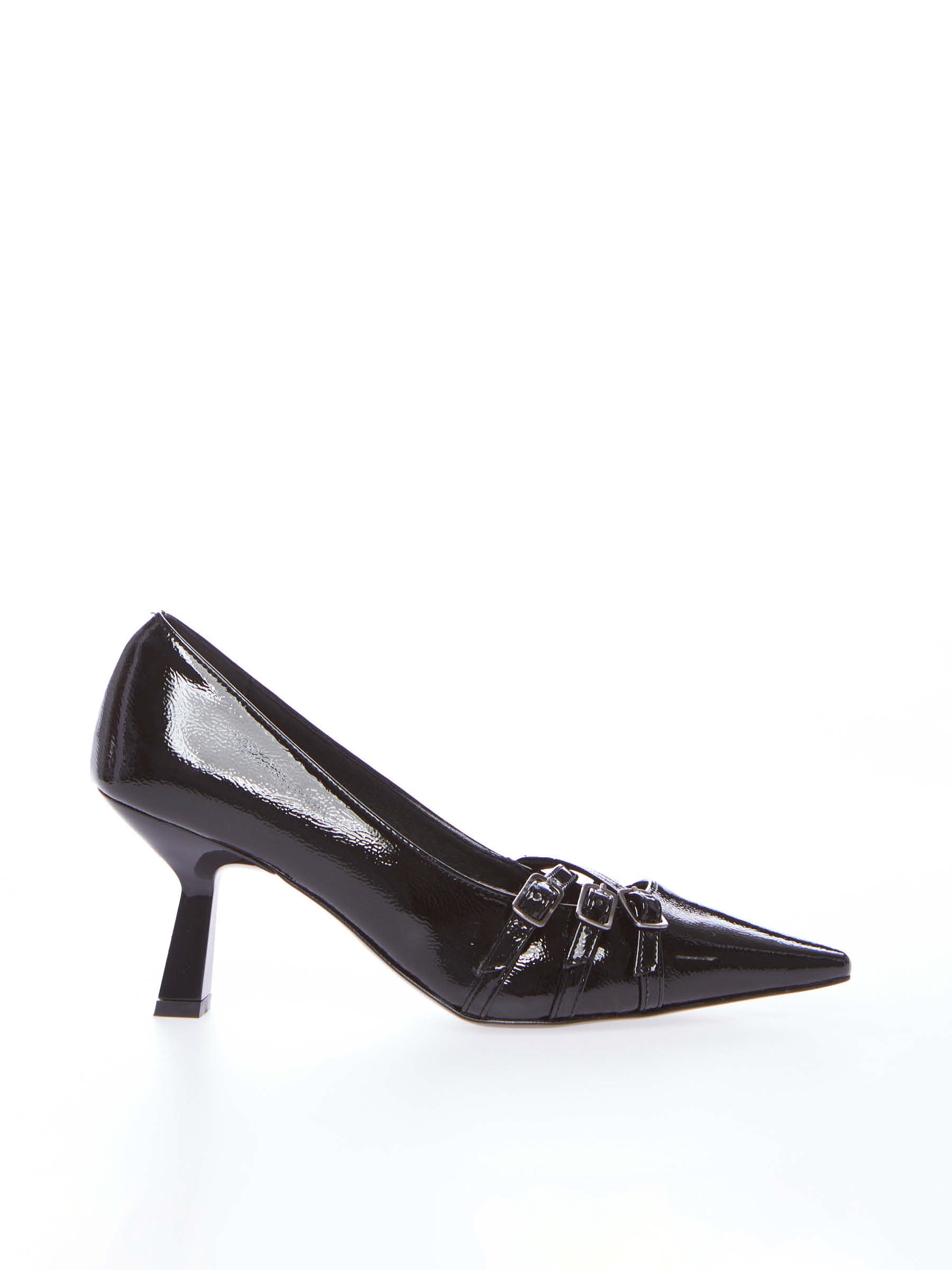 Décolleté in naplak, cinturini, tacco 7 cm.