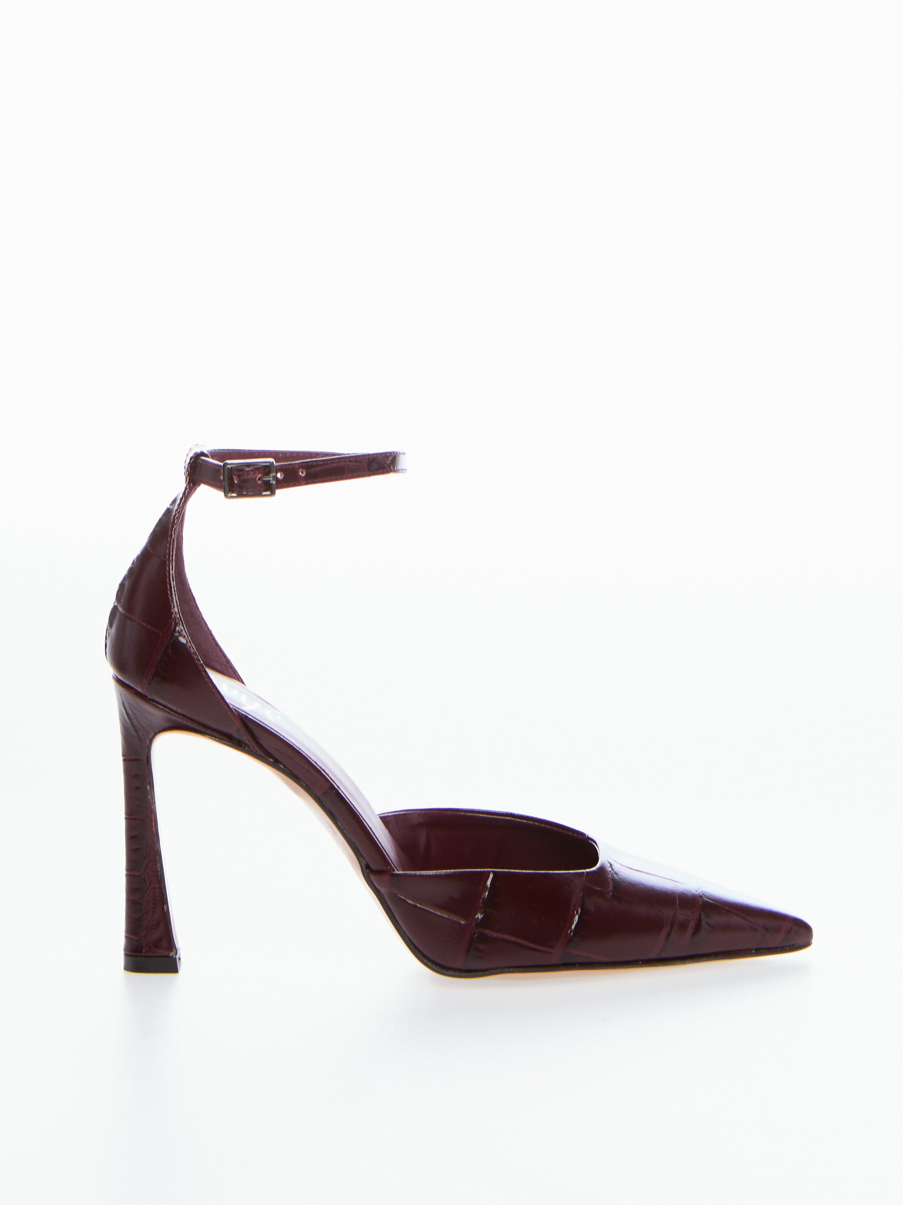 Décolleté in pelle stampa cocco, cinturino, tacco 10 cm.