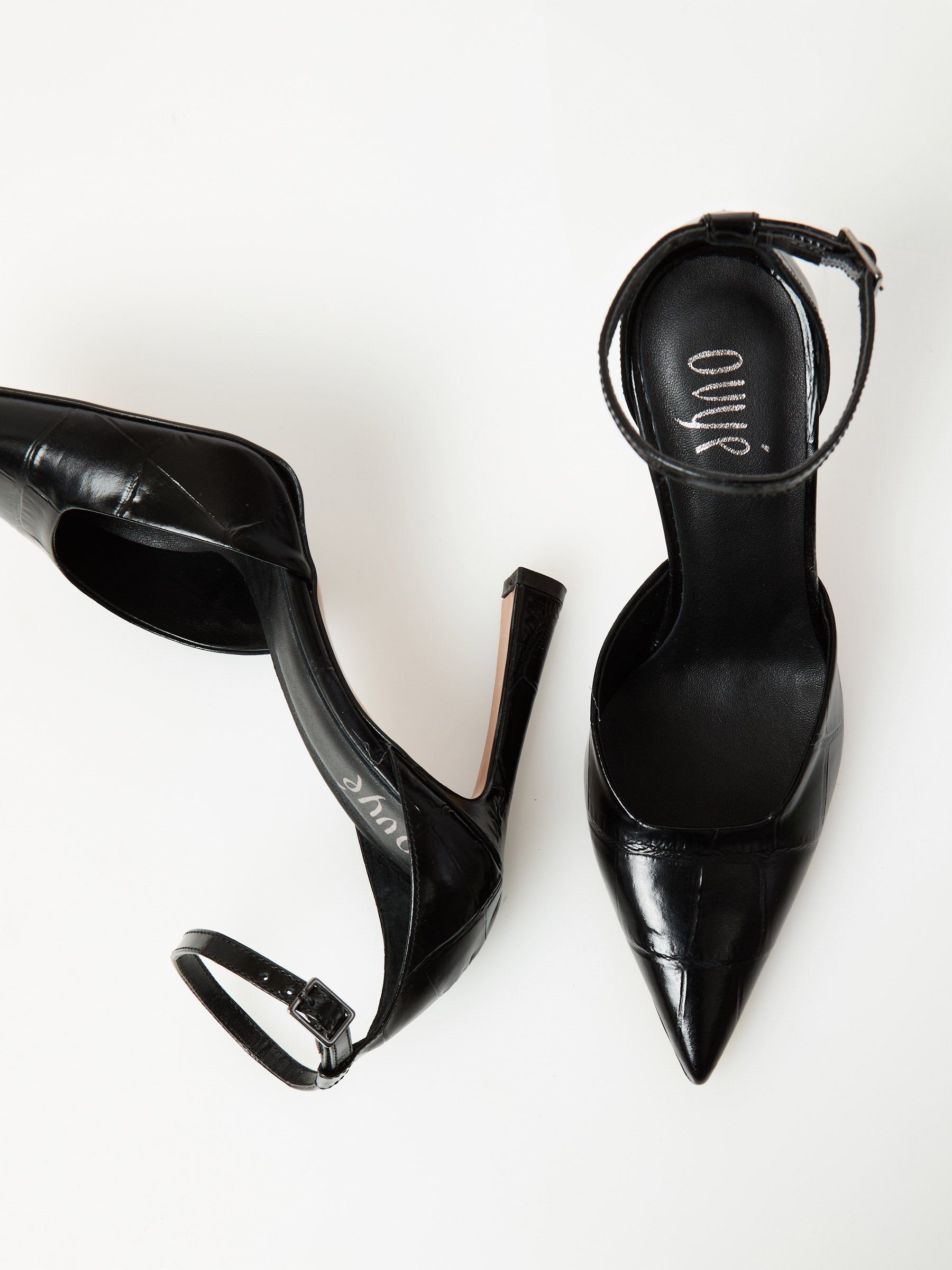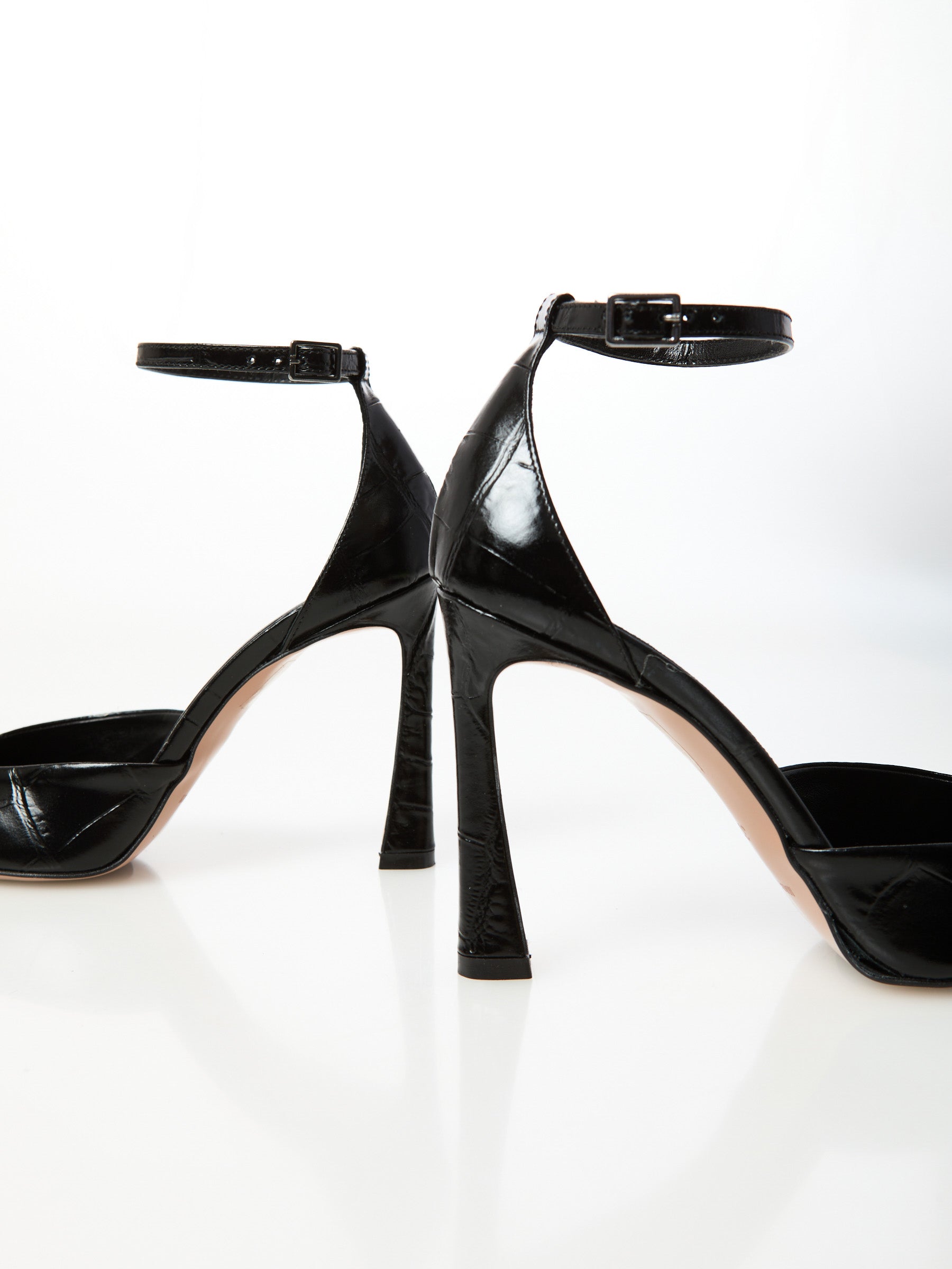 Décolleté in pelle stampa cocco, cinturino, tacco 10 cm.
