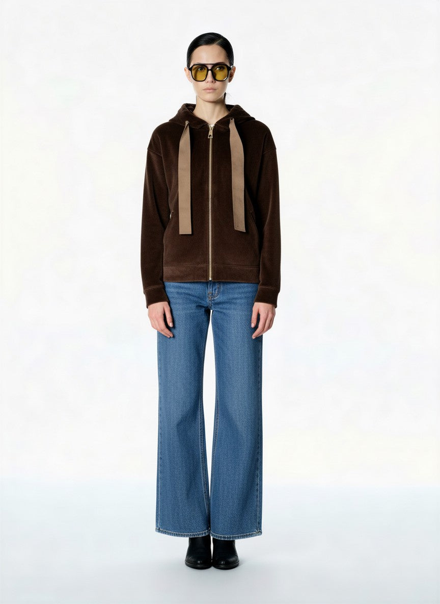 CAPOSPALLA MODELLO FELPA CON CAPPUCCIO EFFETTO VELLUTO.