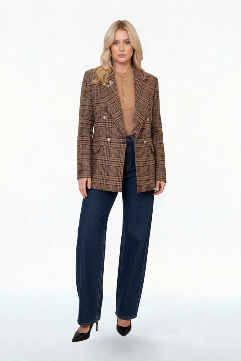 GIACCA DOPPIOPETTO A QUADRI CON SPILLE.
