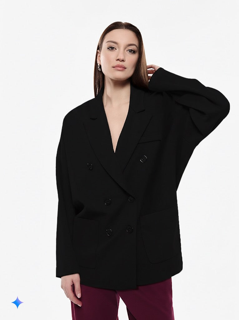 GIACCA DESTRUTTURATA CON CHIUSURA DOPPIOPETTO NERO IMPERIAL.