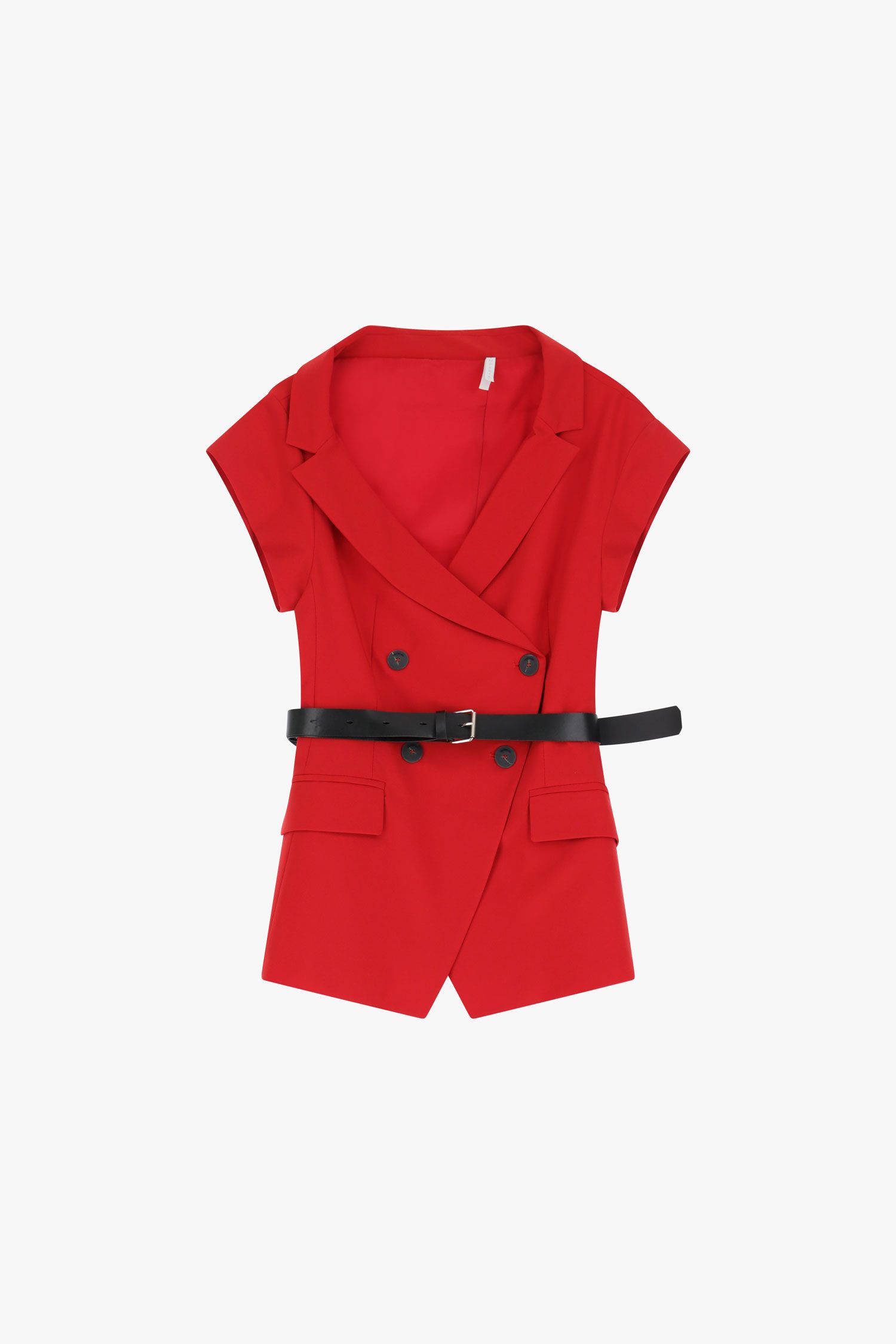 Questo blazer senza maniche offre una silhouette raffinata con una chiusura a doppio petto che conferisce un tocco moderno. La cintura accentua la vita, creando un look personalizzato perfetto per ogni occasione. Un capo versatile che si integra facilmente nel guardaroba di chi ama lo stile urbano sofisticato.