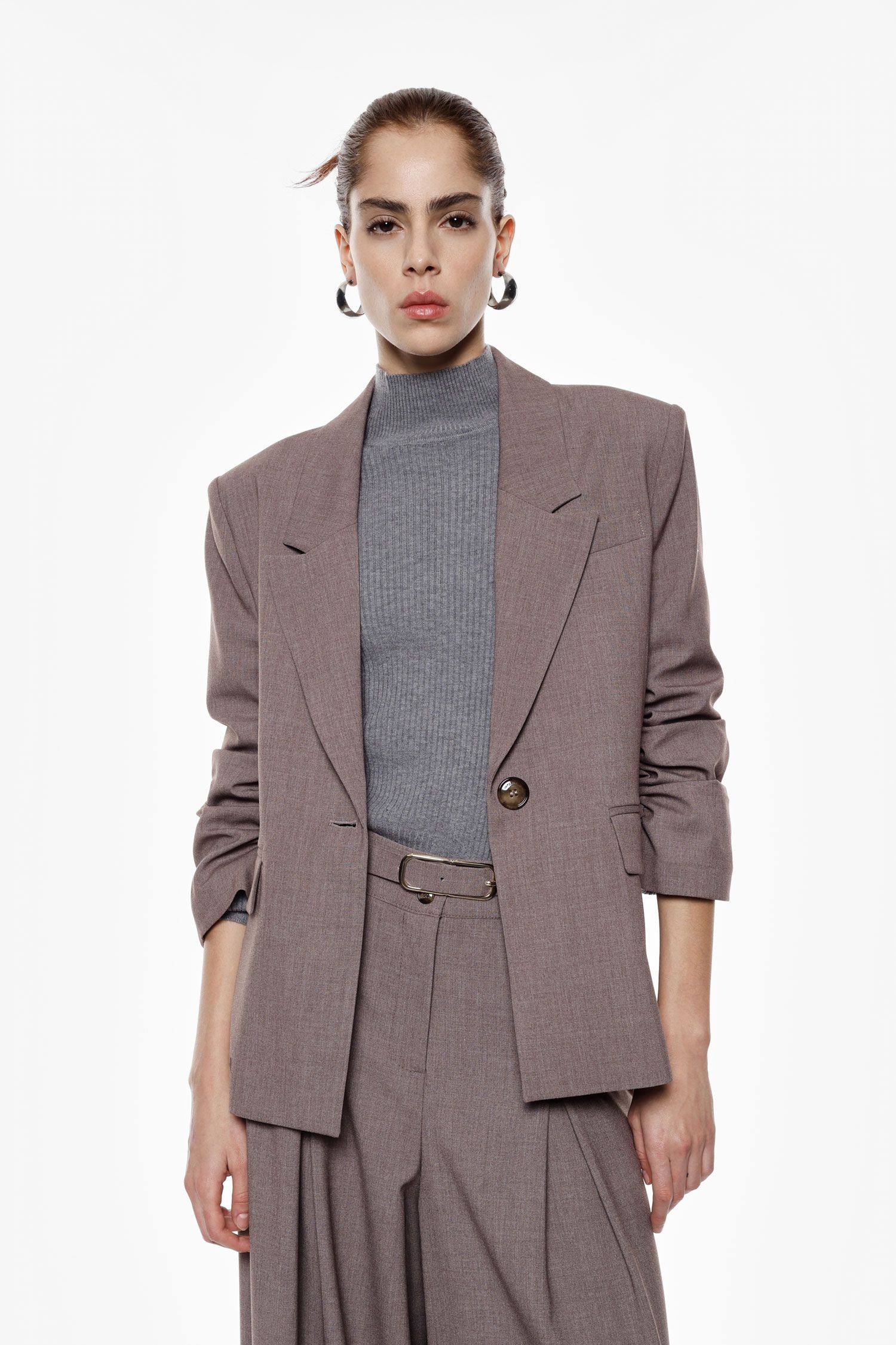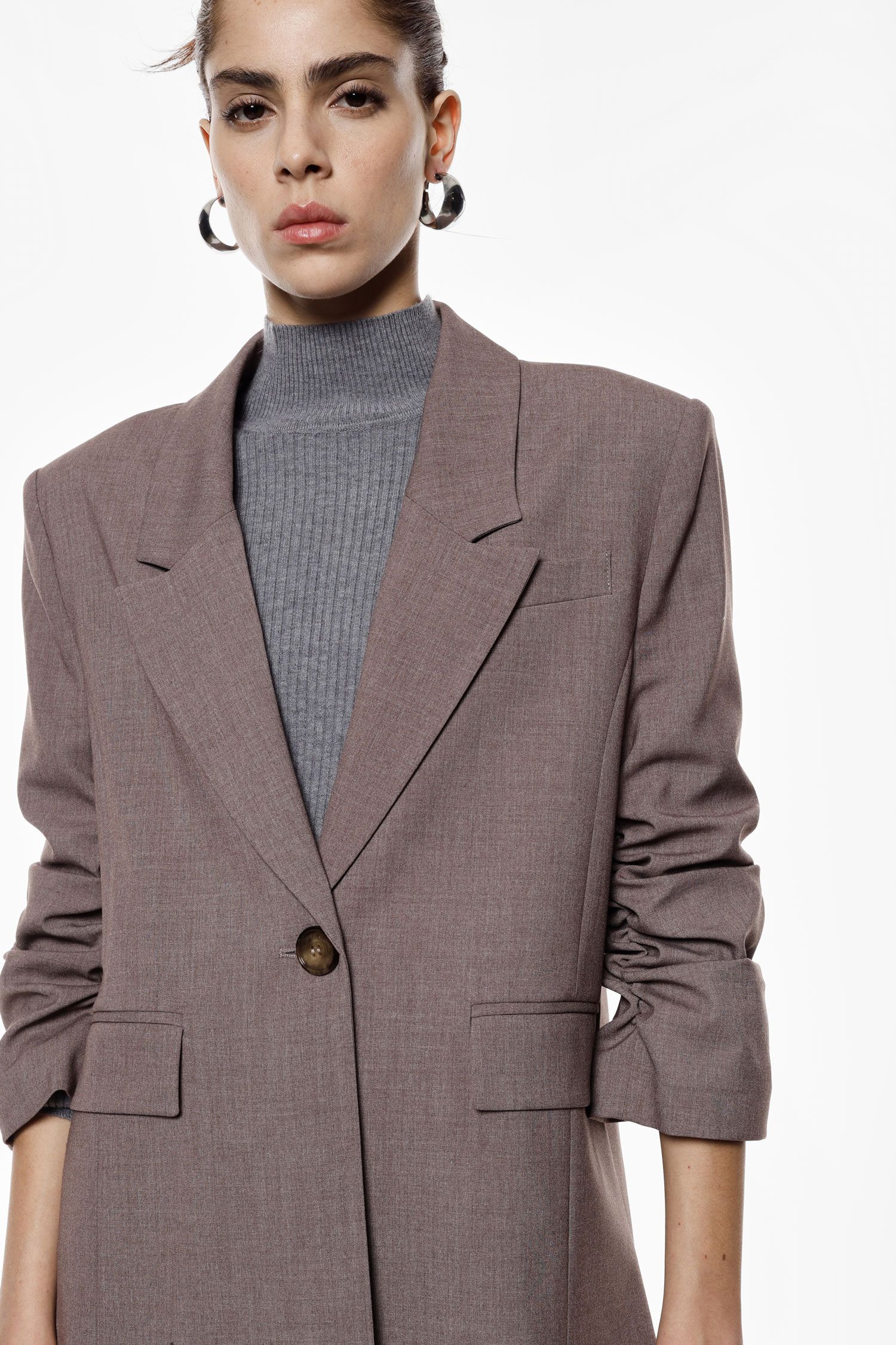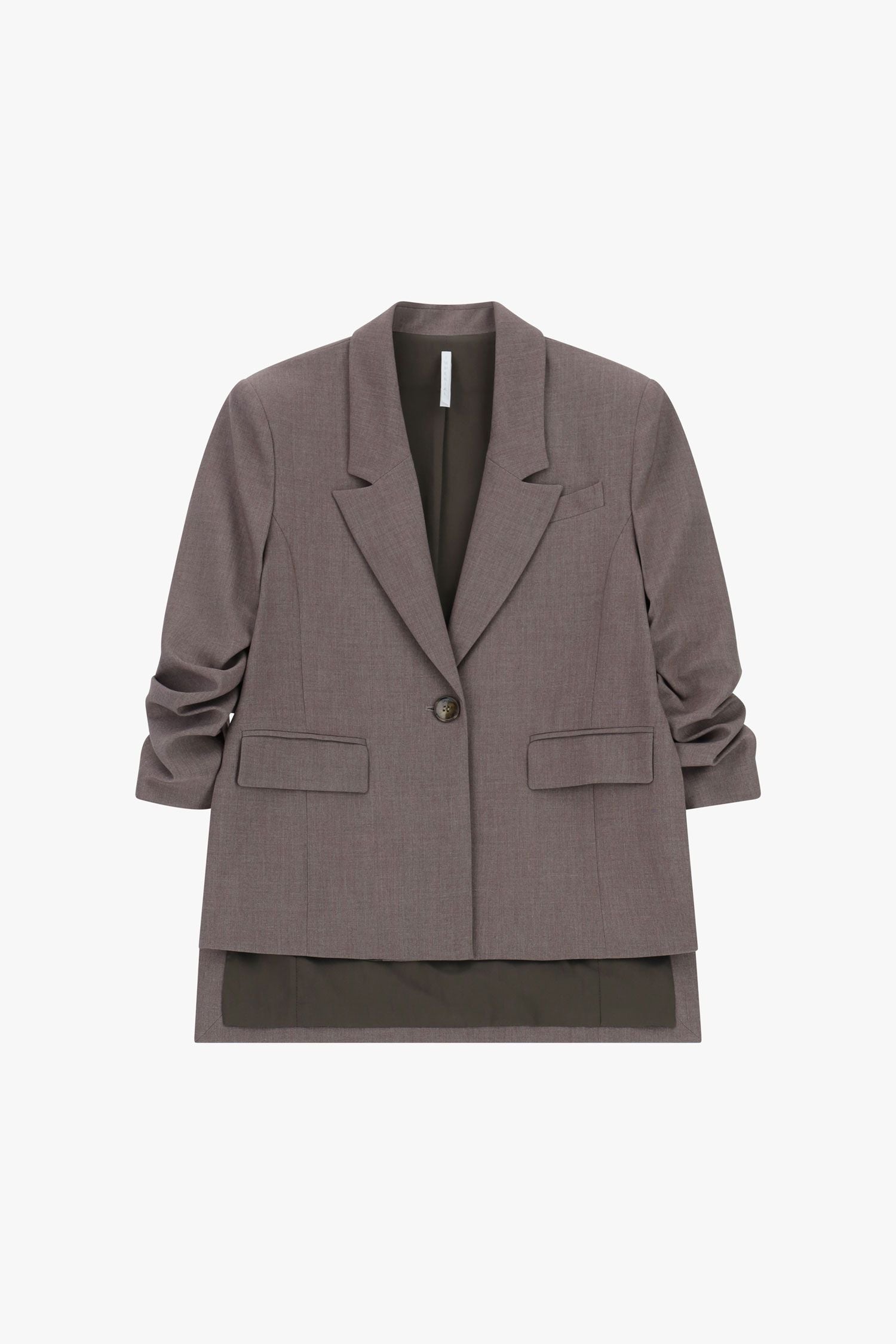 Blazer dal taglio regolare con maniche arricciate e chiusura monopetto a un bottone. Caratterizzato da rever classici, tasche frontali con patta e silhouette versatile, questo capo consente di esprimere il proprio stile personale grazie alla gamma di varianti disponibili.