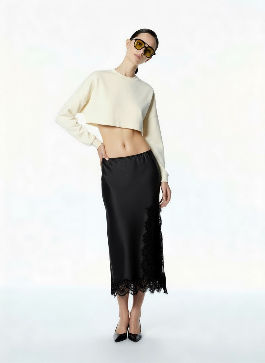 GONNA MIDI CON SPACCO LATERALE E INSERTI IN PIZZO
