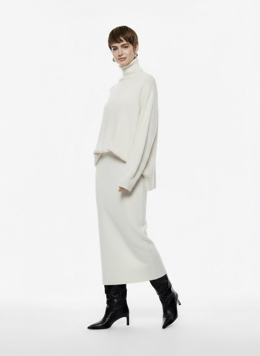 Gonna lunga a tubino con vita alta elasticizzata e taglio dritto, che valorizza le linee senza costringere i movimenti. La palette essenziale si adatta a diversi abbinamenti, offrendo una base sofisticata per look versatili. Perfetta da interpretare con stivali alti, garantisce uno stile urbano e contemporaneo.