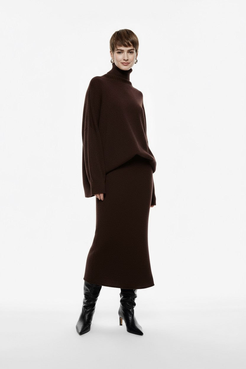 Gonna lunga a tubino con vita alta elasticizzata e taglio dritto, che valorizza le linee senza costringere i movimenti. La palette essenziale si adatta a diversi abbinamenti, offrendo una base sofisticata per look versatili. Perfetta da interpretare con stivali alti, garantisce uno stile urbano e contemporaneo.