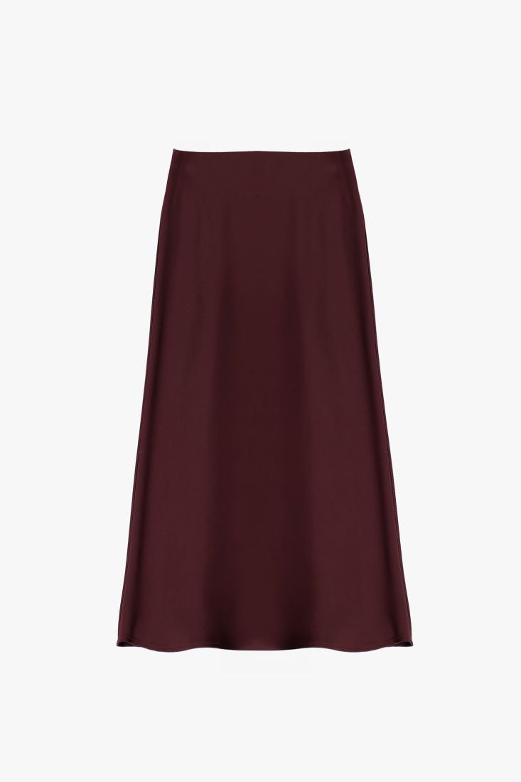 Gonna midi fluida effetto satin MELANZANA IMPERIAL.