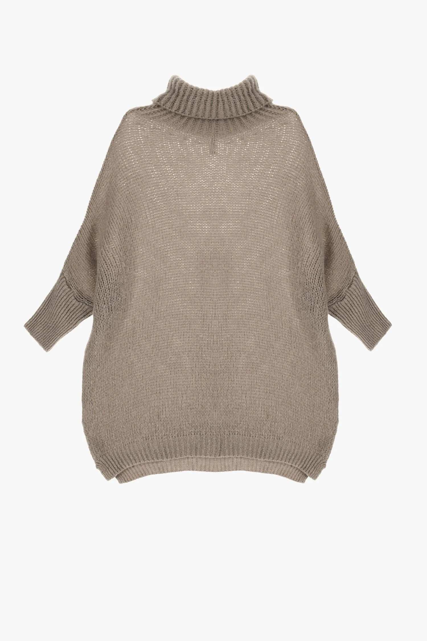 MAGLIA OVERSIZE COLLO ALTO M3025889 TAUPE IMPERIAL.