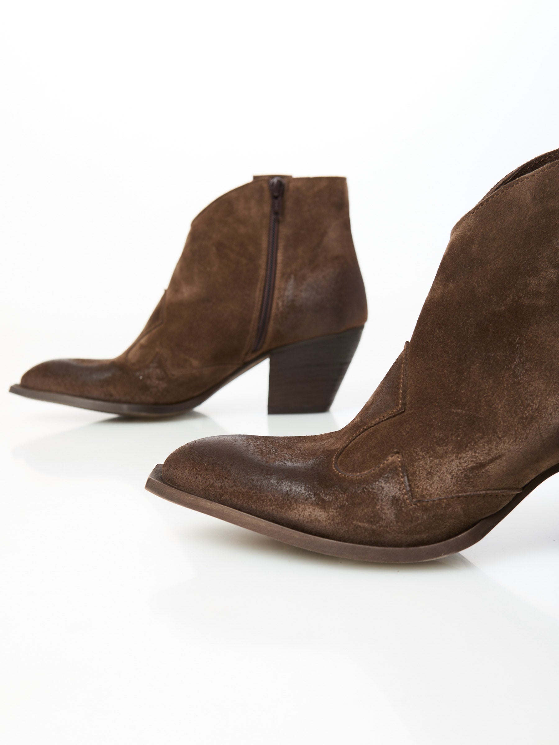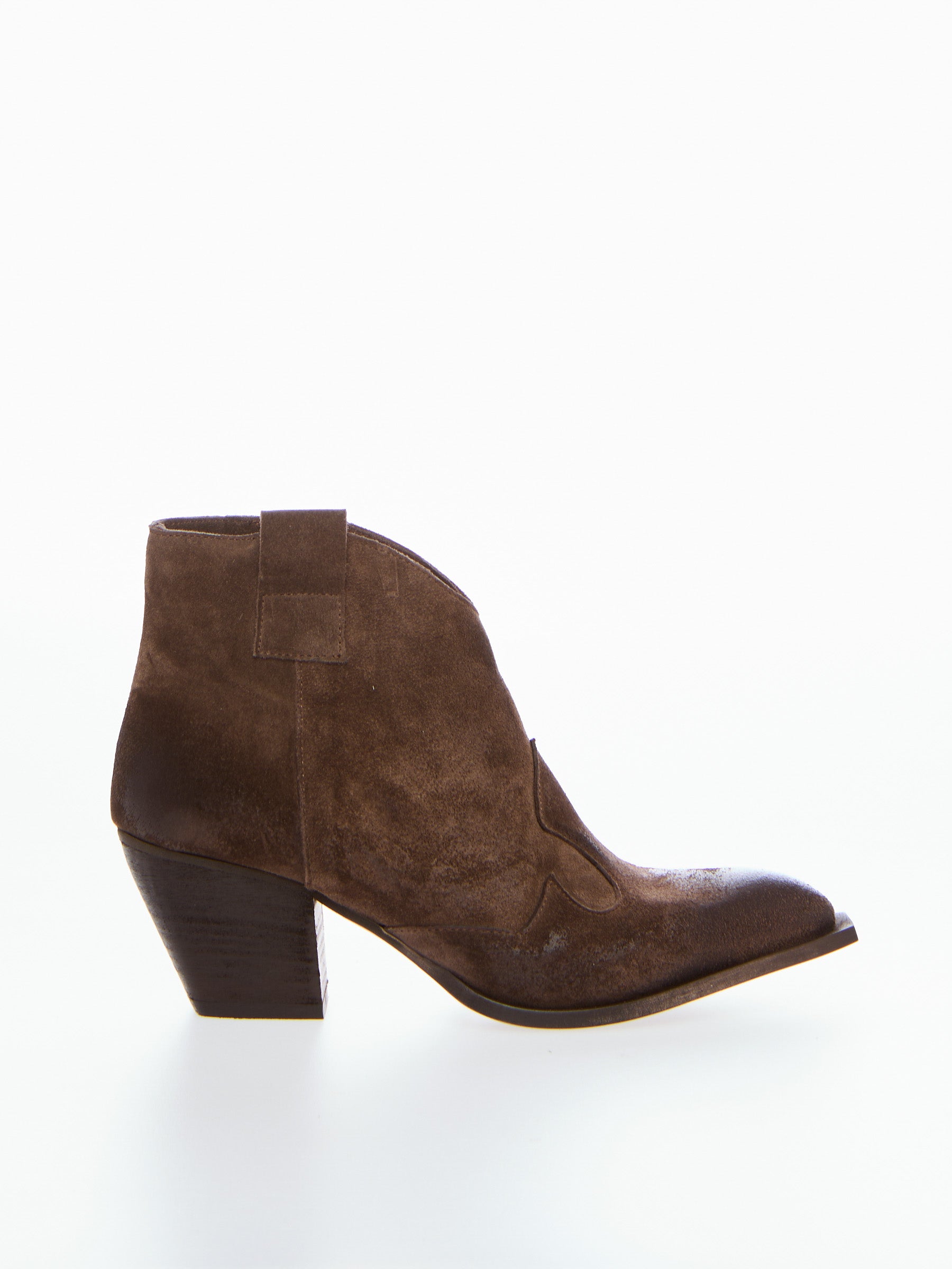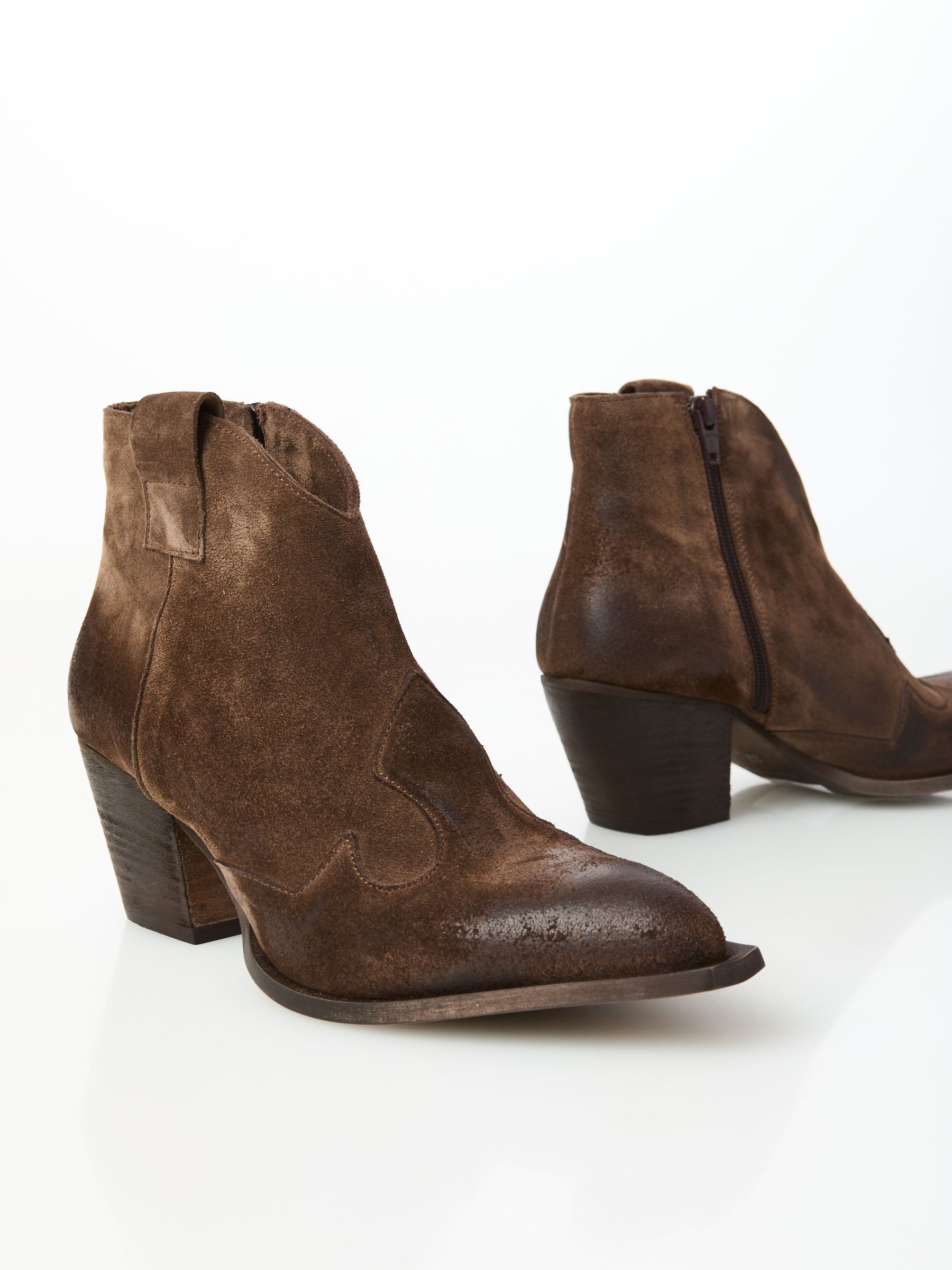 Texanino in camoscio, cerniera interna, tacco 6 cm.