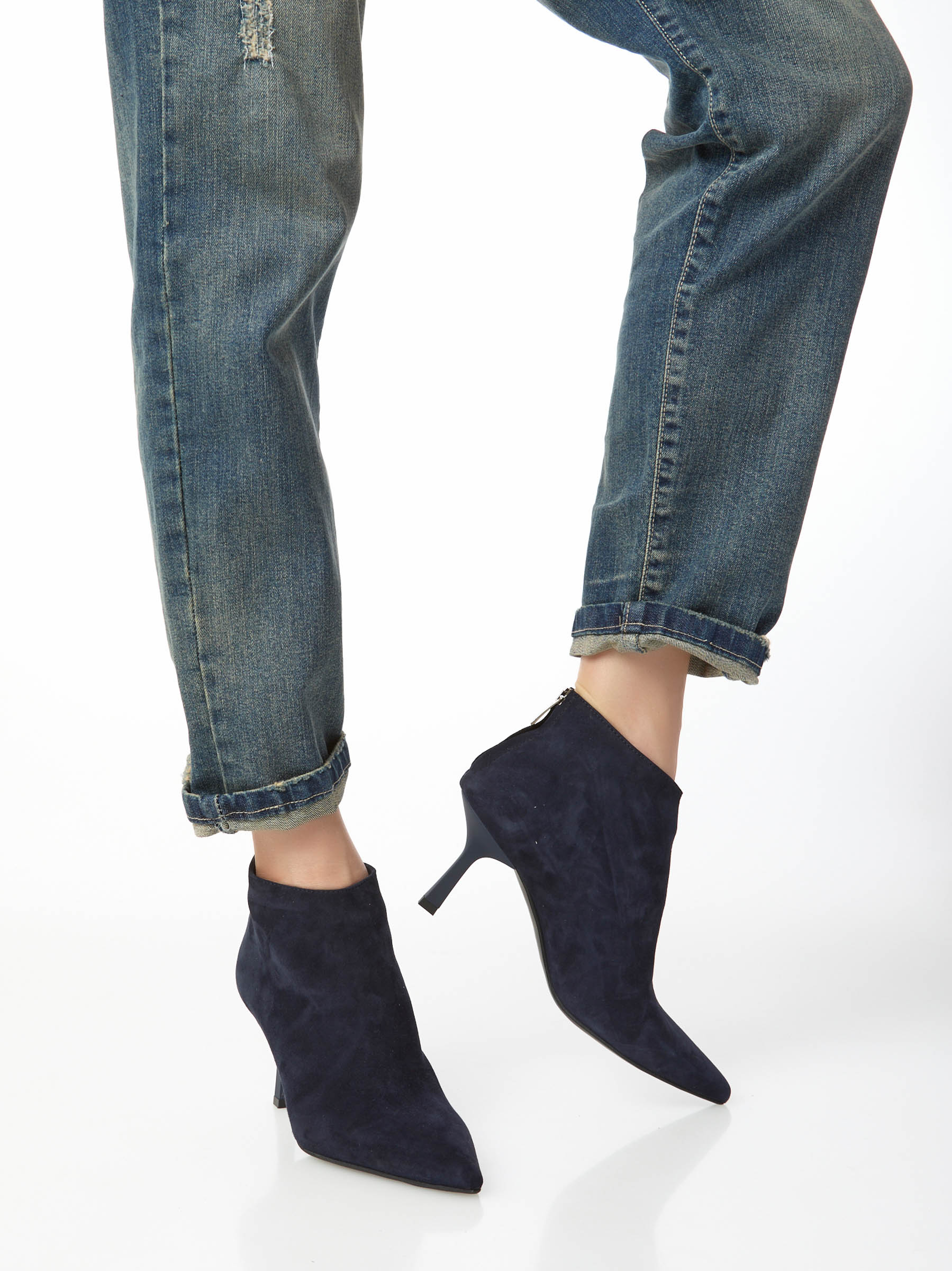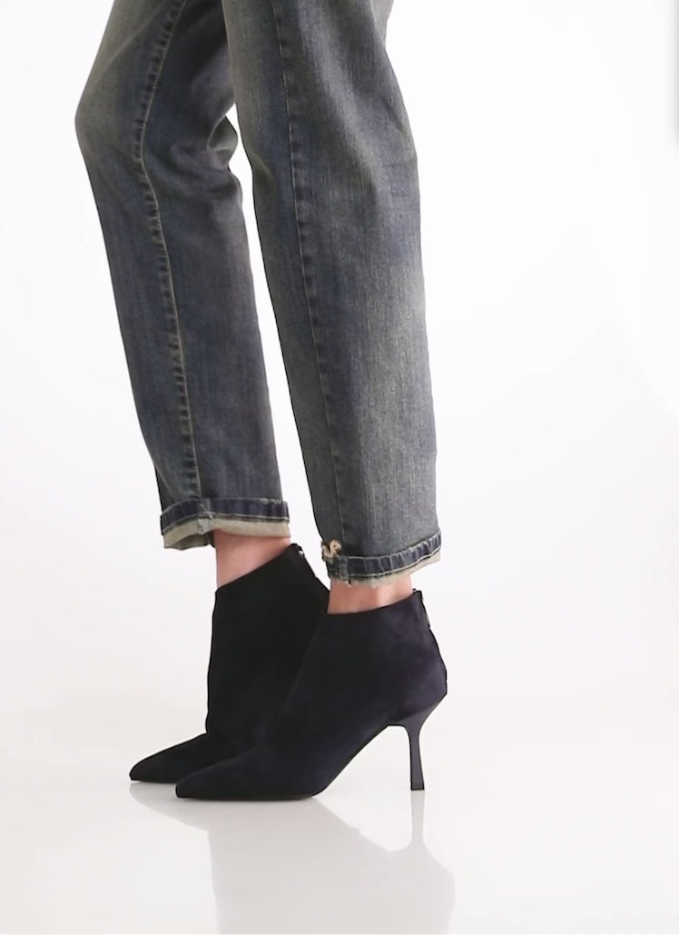 Tronchetto in pelle, cerniera sul retro, tacco 7 cm.